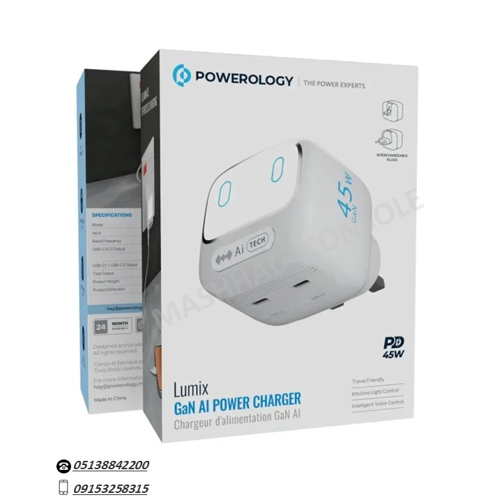 شارژر دیواری پاورولوژی Lumix Gan AI ظرفیت ۴۵ وات