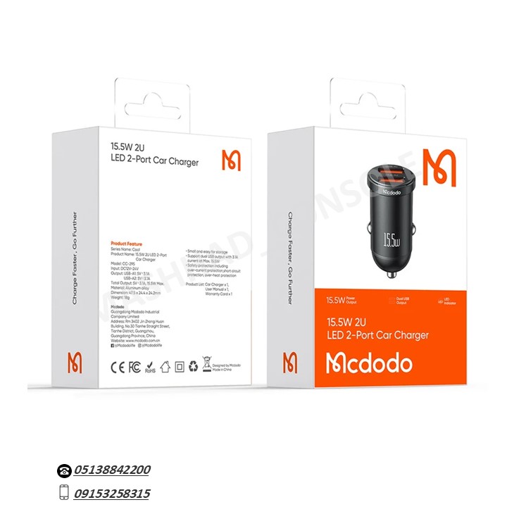 شارژر فندکی Mcdodo 15.5W مدل CC-295 یک شارژر کوچک، ساده و کاربردی برای خودرو است که به‌صورت دو پورت USB-A طراحی شده و می‌تواند هم‌زمان دو دستگاه را شارژ کند. این مدل بیشتر مناسب گوشی‌ها، تبلت‌های کوچک، هدفون‌ها و سایر دستگاه‌های USB است—بدون ادعاهای پیچیده یا امکانات غیرضروری، فقط شارژ مطمئن و سریع در ماشین.