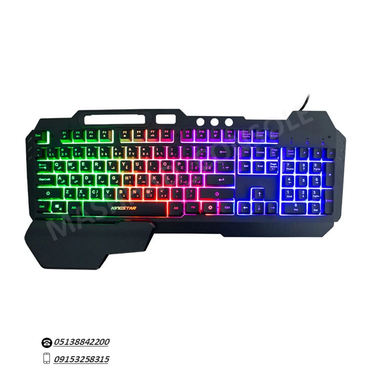نکات فنی کیبورد باسیم کینگ استار مدل KB155G کیبورد گیمینگ کینگ استار مدل KB155G دارای دکمههای حساس هنگام فعالیت میباشد. از مشخصههای این محصول کمپانی کینگ استار، نورپردازی زیبای RGB زیر کلیدها میباشد. روکش ژلاتینی بسیار با کیفیت بکار رفته زیر کلیدهای این کیبورد موجب شده تا طول عمر این محصول به 5میلیون بار کلیک افزایش پیدا کند که این میزان قابل توجهی برای کاربران محصولات گیمینگ میباشد. ازدیگر نکات قابل توجه در طراحی کلیدهای این کیبورد گیمینگ میتوان به مقاوم بودن آنها دربرابر پاشیده شدن آب روی آنها اشاره کرد که موجب رضایت بسیاری از کابران این محصول شده است. یک جک پایه هم در زیر کیبورد جهت قرارگیری راحتتر آن بر روی میز تعبیه شده است. ابعاد این کالا 470x180x38 میلی متر و وزن آن نیز 735 گرم میباشد. این کیبورد همچنین دارای کابلی با ضخامت 3.2میلیمتر و طول 1.5متر میباشد که با پورت USB قابلیت اتصال به دستگاههای شامل این پورت را دارند. ولتاژ و جریان این محصول نیز به ترتیب 5ولت و 100میلیآمپر میباشد. از دیگر نکات فنی کیبورد KB155G ولتاژ و جریان آن است که به ترتیب 5ولت و 100میلی آمپر میباشد. این محصول همچنین از تمامی نسخههای ویندوز نیز پشتیبانی میکند که از مشخصات برجسته آن به شمار میرود.