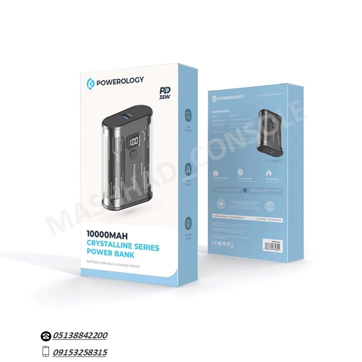 Powerology Crystal Line PPBCHA24 یه پاوربانک 10000 میلیآمپرساعتی با طراحی شفاف و ظاهر مدرن است. این مدل خصوصاً برای کسانی مناسبه که دنبال یه منبع شارژ سریع، قابل حمل و چندکاره هستن — مثلا وقتی بیرون هستی، مسافرت داری یا شارژر دسترسی نداری.