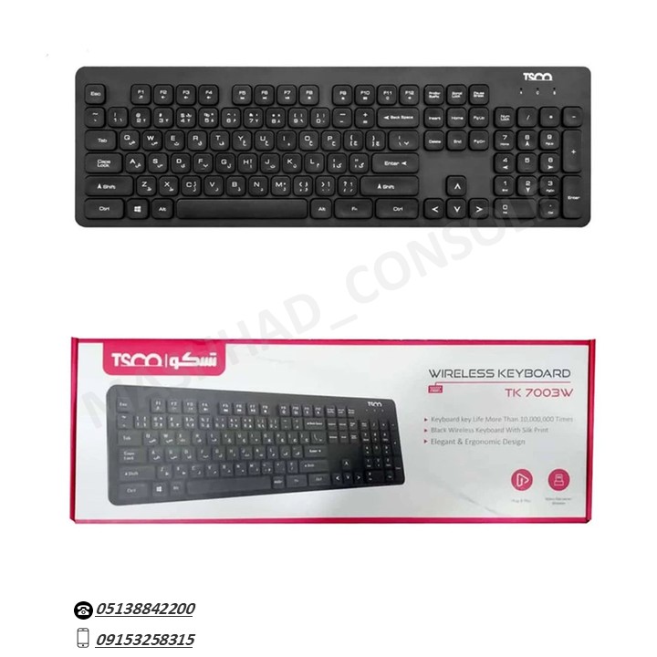 کیبورد تسکو مدل TK 7003W یک کیبورد بی‌سیم ساده، جمع‌وجور و کارآمد است که برای استفاده روزمره در خانه، محل کار یا مدرسه مناسب است. بی‌نیازی به کابل و نصب ساده باعث می‌شود تجربه کار با کامپیوتر یا لپ‌تاپ راحت‌تر و میز کار مرتب‌تر شود. این مدل بیشتر برای تایپ‌های معمولی، کارهای اداری و مرور وب طراحی شده و امکانات پیچیده یا گیمینگ حرفه‌ای ندارد.